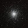 M92 ist einer der hellen kugelförmigen Haufen am nördlichen Himmel, er ist in der Nähe des bekannten M13 im Herkules aufzufinden. Die beiden Kugelsternhaufen sind auch räumlich benachbart, der gegenseitige Abstand beträgt etwa 1.500 Parsec; zum Vergleich - die Entfernung zum Zentrum der Milchstraße beträgt 11.000 Parsec. |