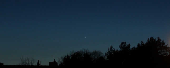 Merkur knapp über dem Horizont im Südwesten, Zoom mit Brennweite 55mm.