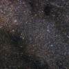 Oberhalb der Sagittarius- Wolke M24 trifft man auf den kleinen Sternhaufen Messier 18. Er hebt sich durch bläulich erscheinende Einzelsterne vom hellen Hintergrund der Milchstraße im Sternbild Schütze ab. |